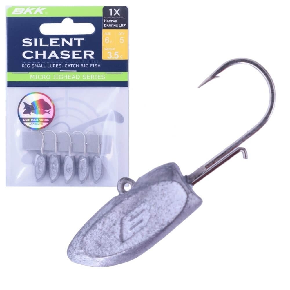 The BKK Silent Chaser Harpax Darting Jigheads are built for Light Rock Fishing (LRF) and ultra-light predator fishing, offering sharp hook penetration and a unique darting action that triggers reaction strikes from even the wariest fish. Their streamlined head shape and precision balance make them perfect for finesse presentations with small soft plastics.